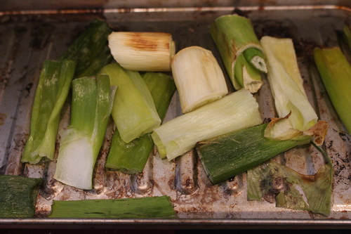 - 白ねぎは2cm幅に切り、トースターで焦げ目がつくよう焼いておく。