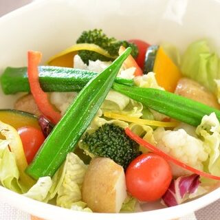 - 器に盛りつけ、ドレッシングをかけて完成です。