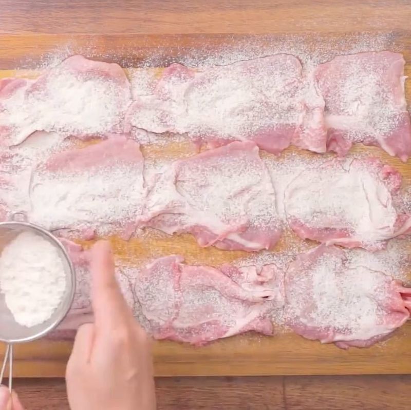- 豚こま切れ肉に片栗粉をまぶす。