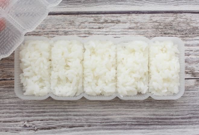 ダイソーの「寿司型」が100円だけどめっちゃ使える!ぎゅっと押して、ポンと出せばシャリができる。