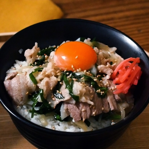 - 丼にご飯を盛り、牛肉と野菜を乗せタレをかけます。